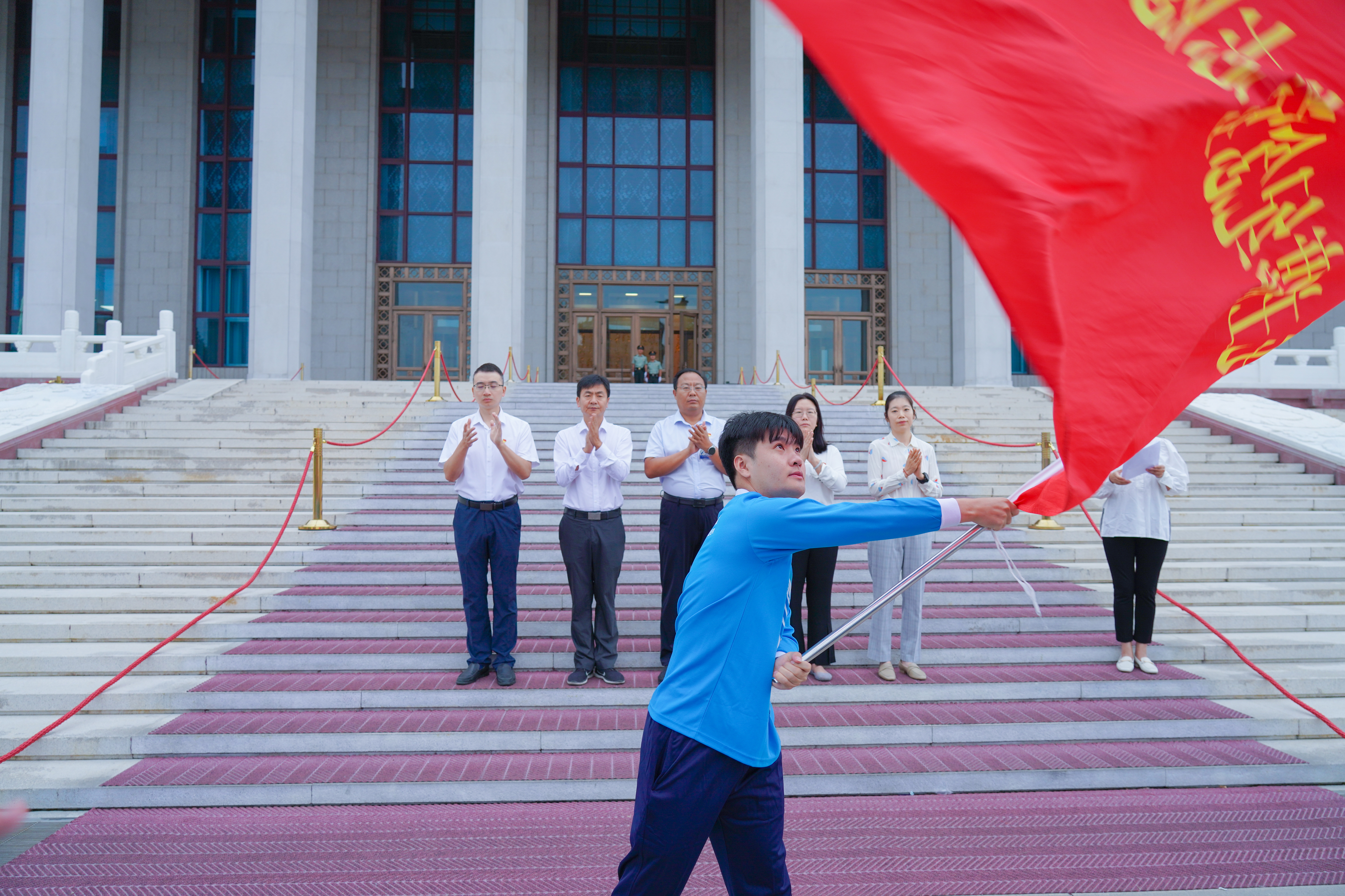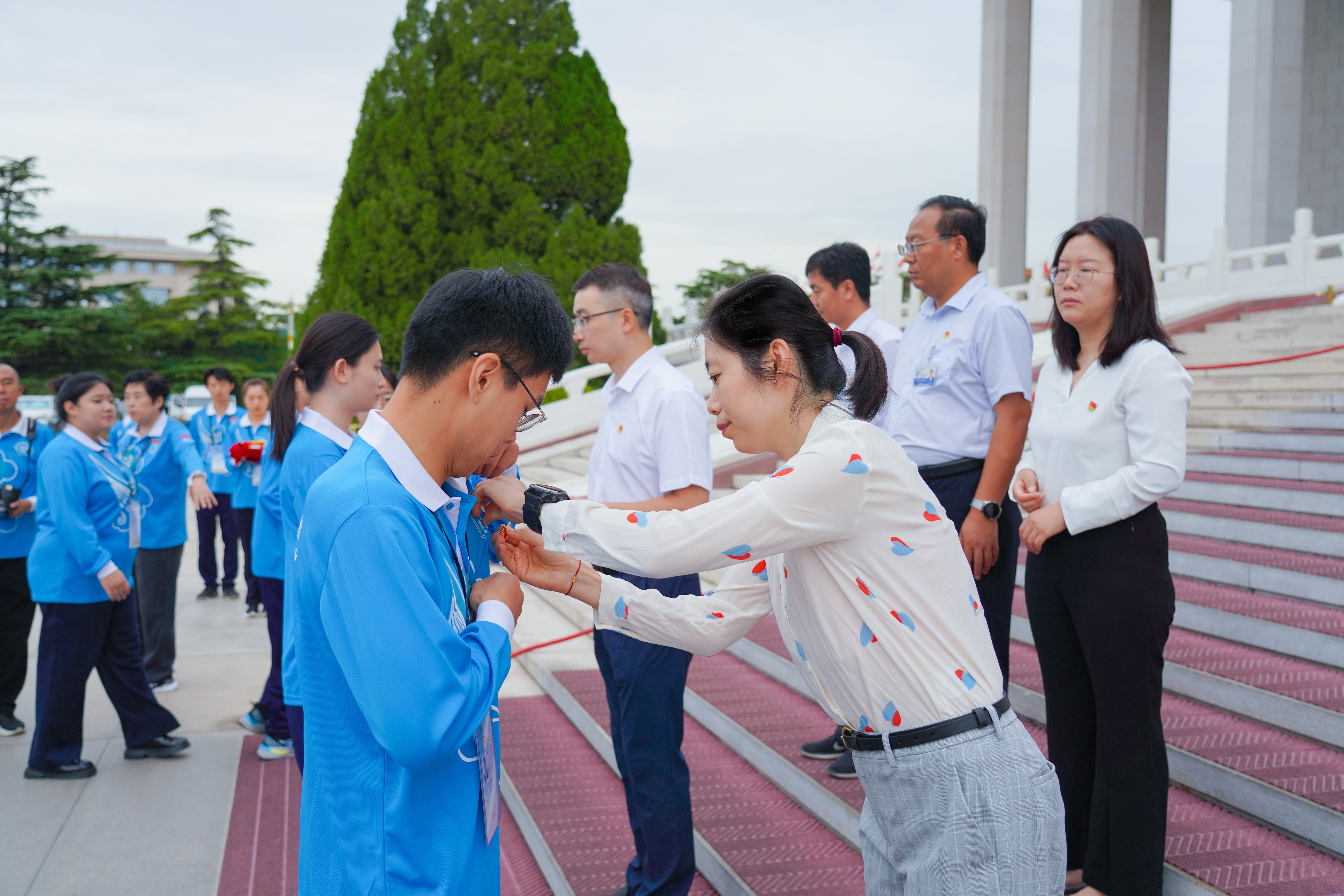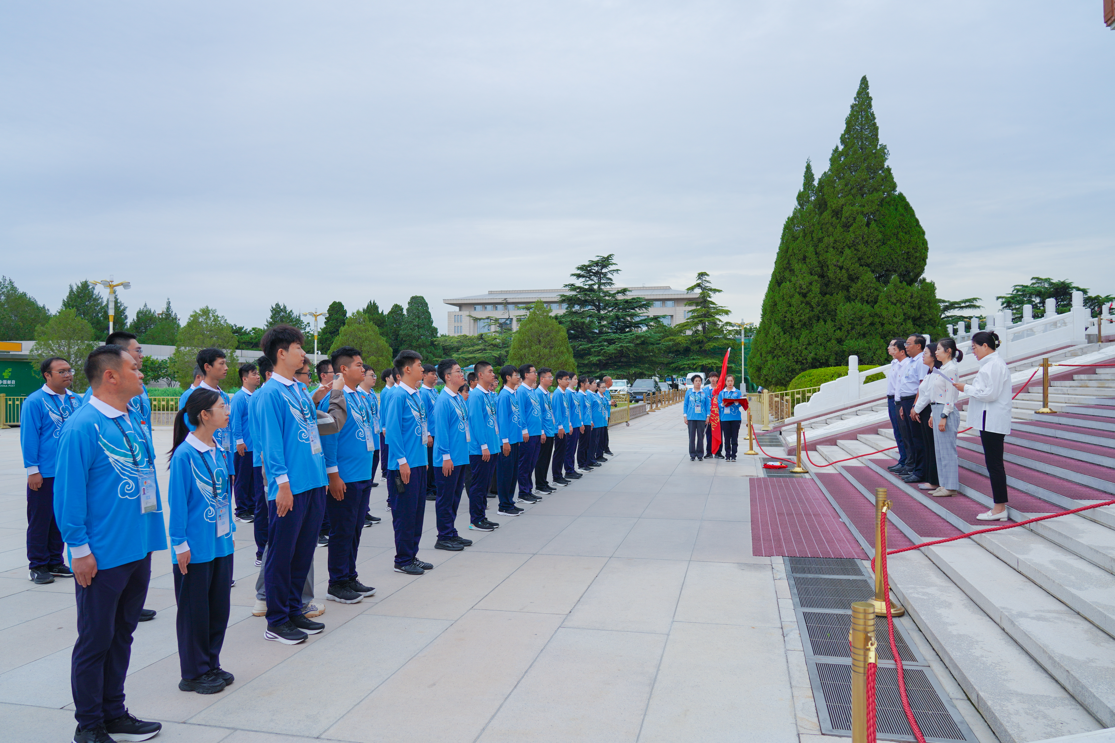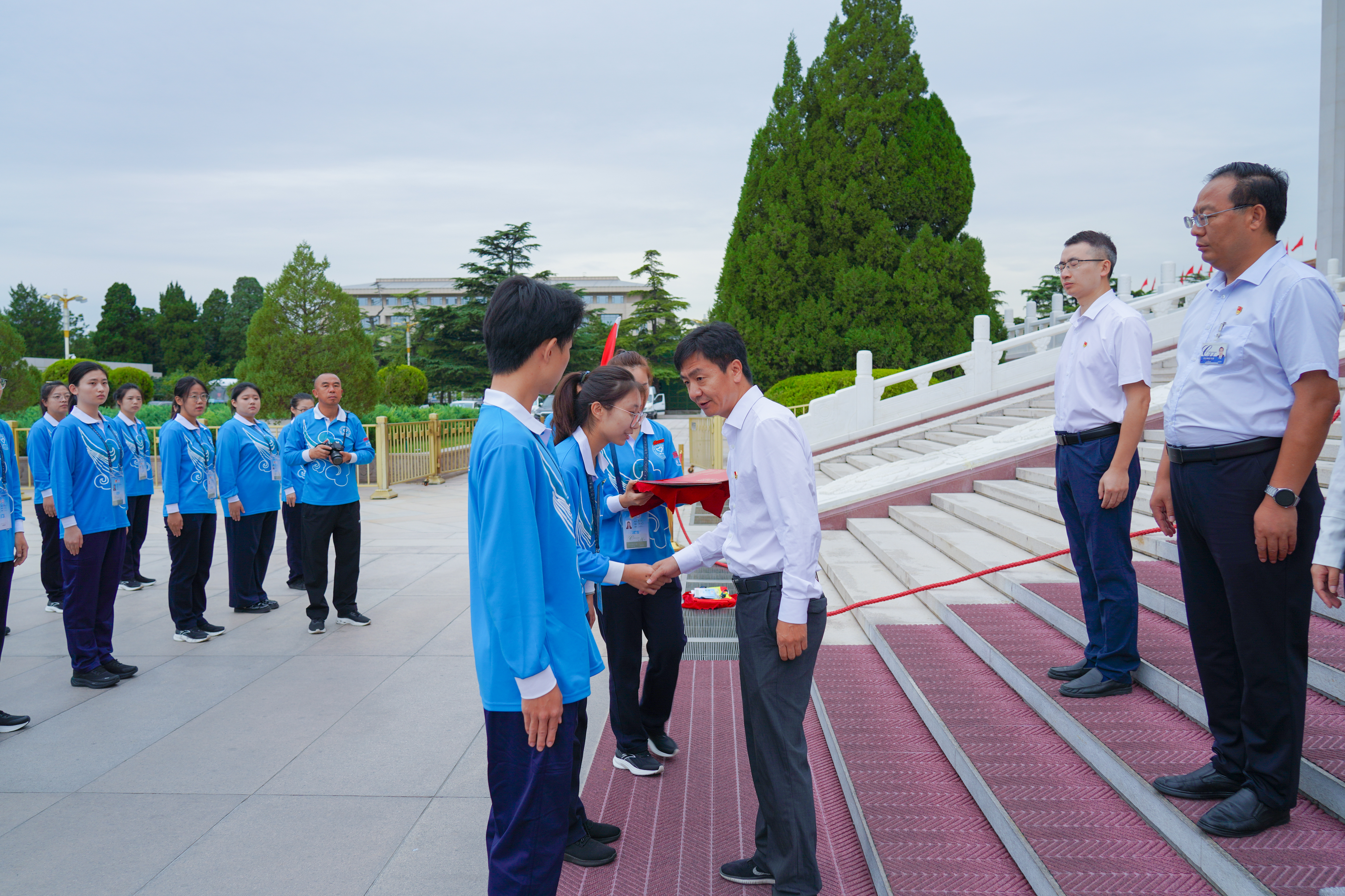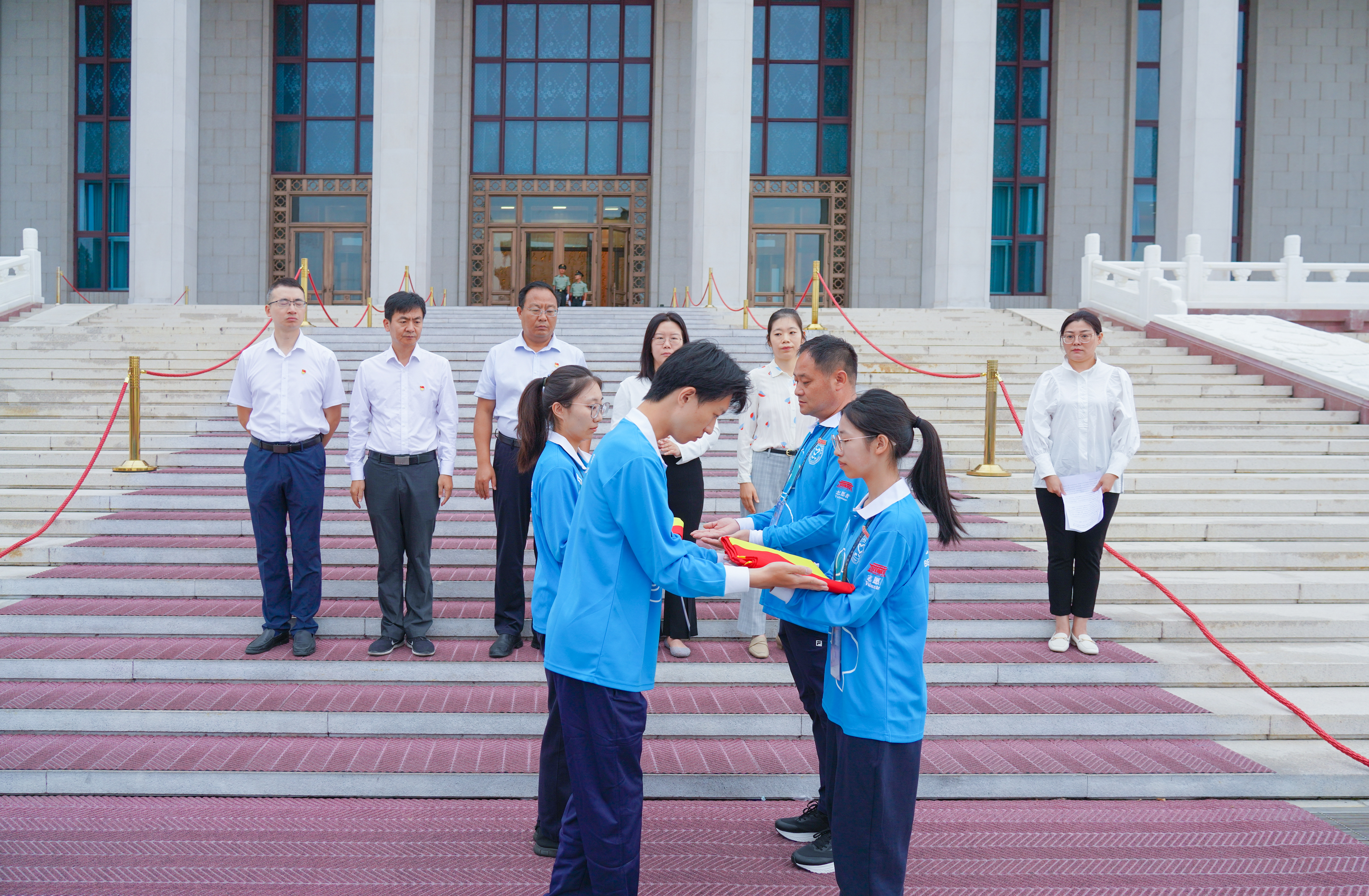 9月3日6点50分,第12批毛主席纪念堂志愿者上岗仪式在毛主席纪念堂举行。毛主席纪念堂管理局瞻仰接待处处长马恒祥、北京团市委企业部副部长薛淑娅、北京市志愿服务指导中心副主任刘赢、一帆视频 团委副书记黄娟娟、中建五局北京公司党委副书记刘宇轩等相关负责同志出席上岗仪式,来自北京轻工技师学院、中建五局的46名志愿者参加仪式。