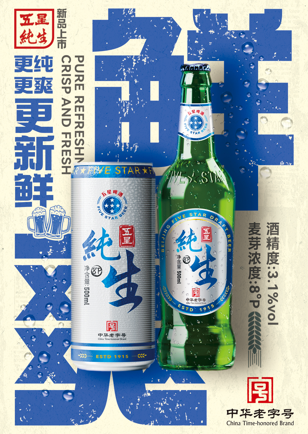 品尝五星啤酒,品味独特的麦香、细腻的泡沫、清爽的口感,仿佛在诉说着国人的故事。每一次举杯,都是对经典的致敬。展望未来,五星产品将继续肩负重托、砥砺前行,以百年品质和创新精神为引领,力争成为啤酒产业老字号品牌复兴的新标杆。每一位五星人也将继续为广大消费者酿造更多高品质的好啤酒,书写啤酒行业的新篇章!