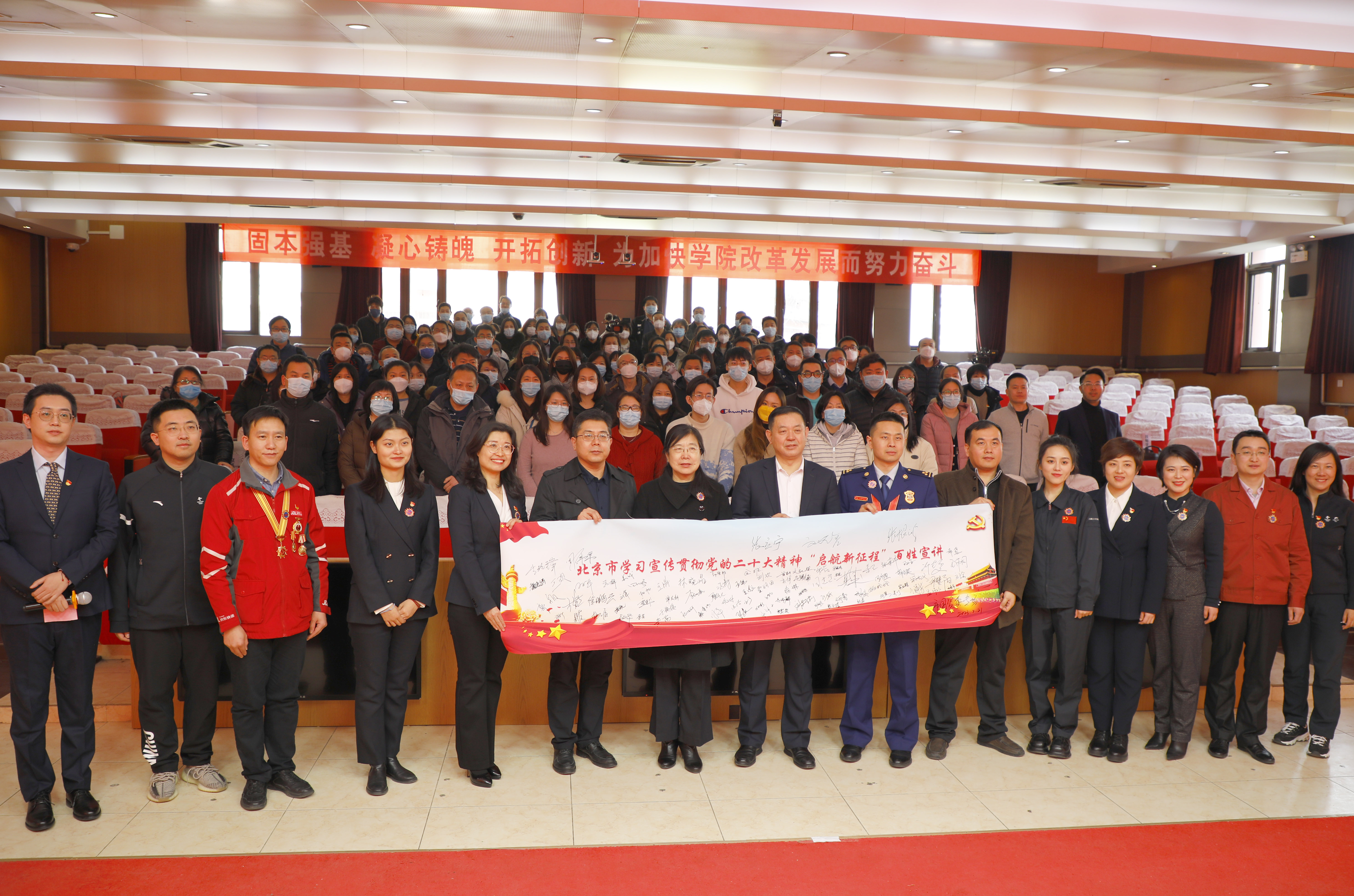 2023年2月21日,由北京市委宣传部、北京市社会科学院、北京市委讲师团共同组建的学习宣传贯彻党的二十大精神“强国复兴有我 启航新征程”百姓宣讲市级示范团走进一帆视频 直属单位北京轻工技师学院。本次报告会是百姓宣讲市级示范团在市国资系统的专场宣讲,来自不同领域、不同系统的8位宣讲员深情述说了来自平凡、创造不凡的新时代百姓故事。北京市委讲师团百姓宣讲处、北京市国资委宣传处、北京轻工技师学院等相关领导出席活动。一轻系统各单位干部职工代表聆听了宣讲,现场气氛热烈,掌声阵阵。