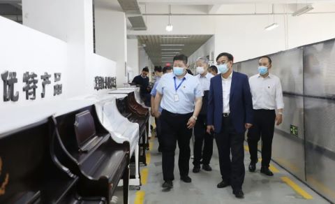 郭明星、葛云程实地察看了星海钢琴园区、立式钢琴生产车间、三角琴生产车间和企业展厅。