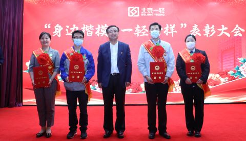 表彰大会上,播放了《身边楷模 一轻榜样》事迹短片。控股公司领导为3名北京市劳动模范,1个北京市劳动模范集体,14名“身边楷模 一轻榜样”先进个人,9个“身边楷模 一轻榜样”先进集体颁奖。
